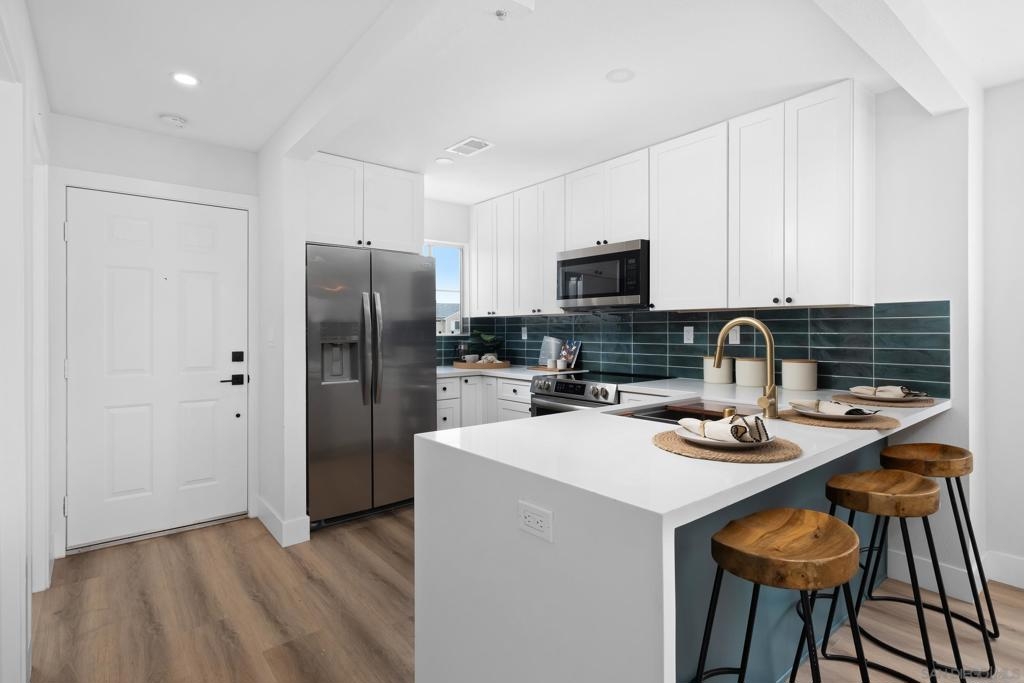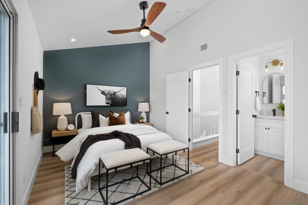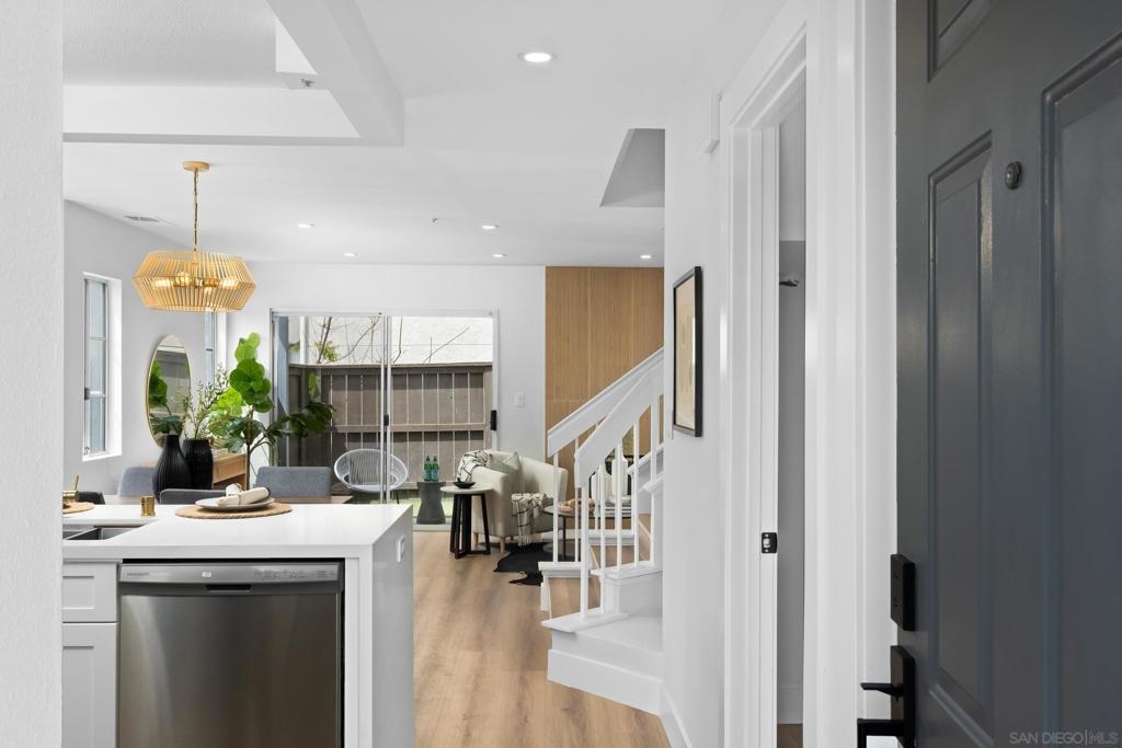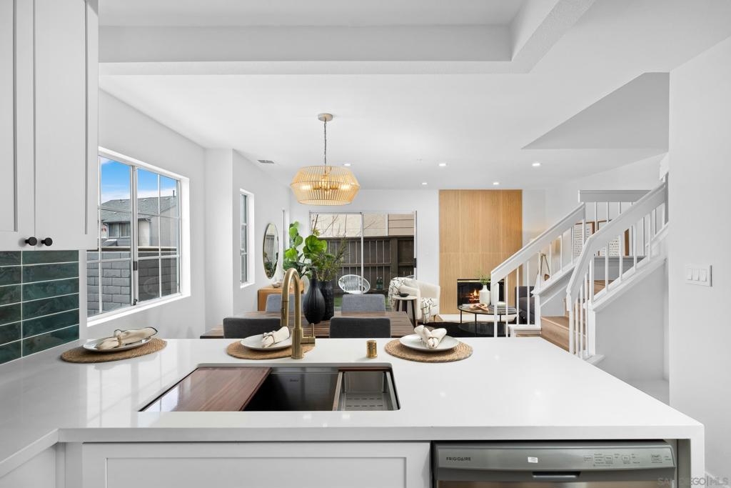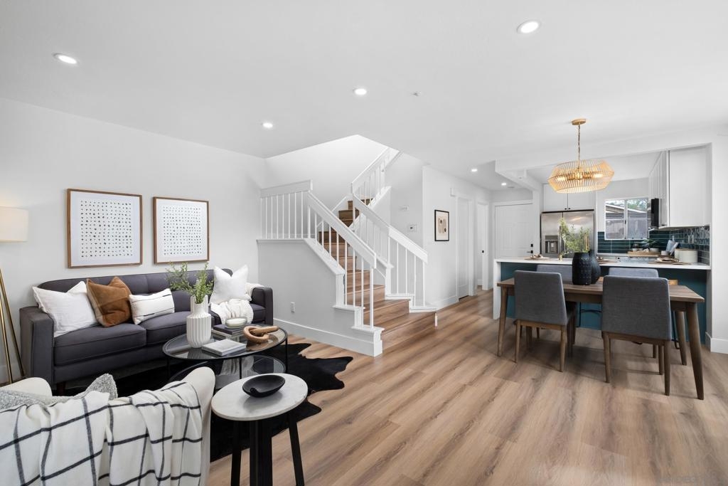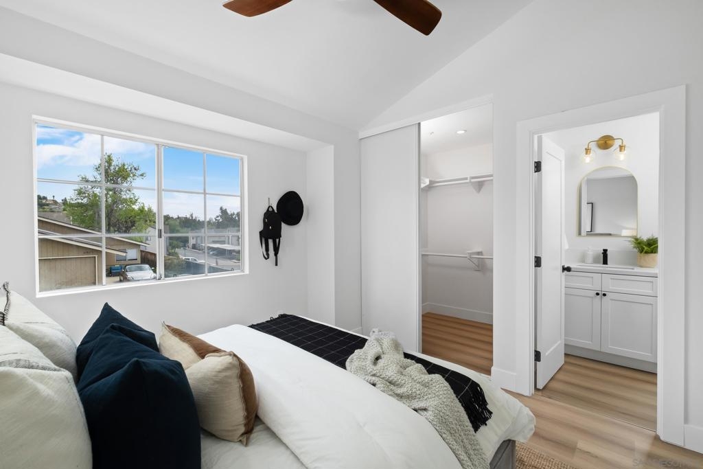 Two story end unit 2 bedroom 2.5 bathroom in the private gated community of Ashford Park in Spring Valley is ready for you to call a home! An inviting open floor plan creates a warm and welcoming ambiance with its recessed lighting and natural light right when you step inside! The living room features a central fireplace and is next to a private patio where you can enjoy the indoor and outdoor living space. The kitchen has designer touches and modern finishes. Downstairs, you'll also find a convenient half bathroom and laundry room. Upstairs are your two dual primary bedrooms. One of the rooms includes a spacious walk-in closet, while the other opens onto a charming balcony. Ashford Park has a playground, a community pool, and is dog friendly! Easy access to the South Bay Fwy (125), restaurants, markets, and more!