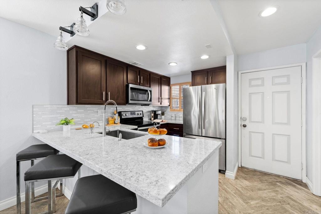 VA & FHA APPROVED. Owned SOLAR. Run your AC during summer without sweating the pain of the SDG&E bill. Remodeled kitchen and baths. Not a Flip! Bedrooms are generously sized and both have en suite bathrooms. Gated Complex in the heart of Spring Valley. End unit, only sharing 1 wall, featuring 2 Beds/2.5 Baths, a large private patio, Upstairs bedrooms feature vaulted ceilings. Kitchen opens up to combo dining/living area for a light and bright, open floor plan. Large laundry room with washer & dryer included. Central AC/Heat. Tile floors downstairs look like wood. Complex is fully gated and secured. Community features Pool, spa, dog park and well manicured landscaping throughout.