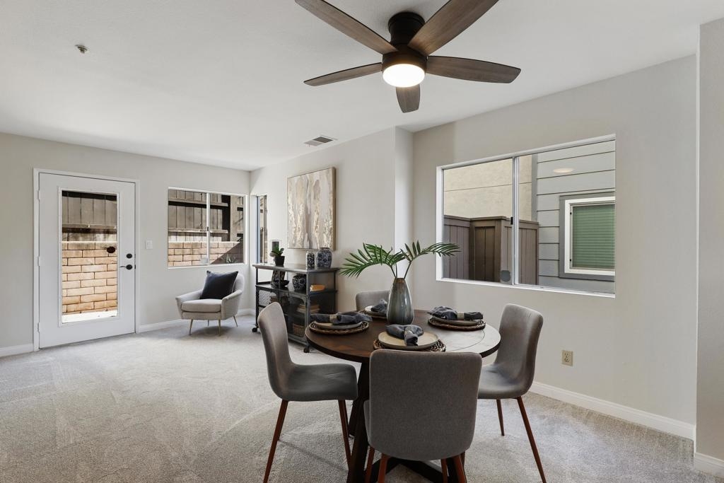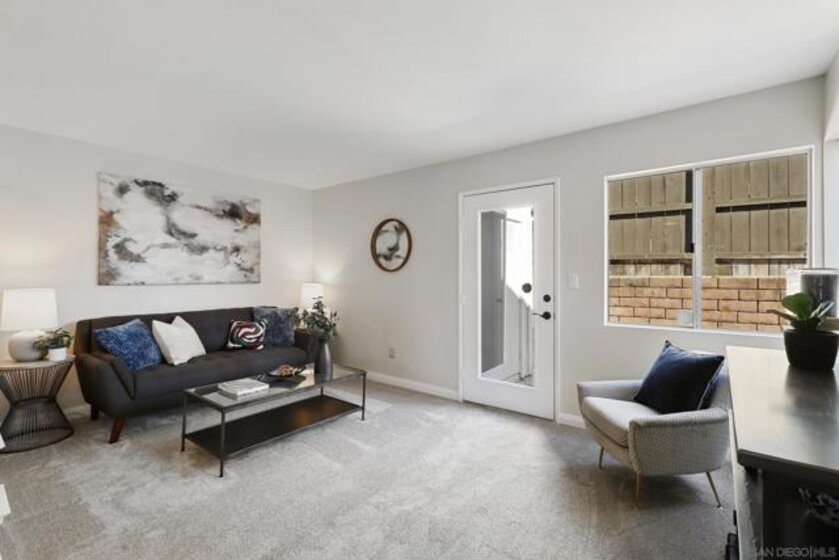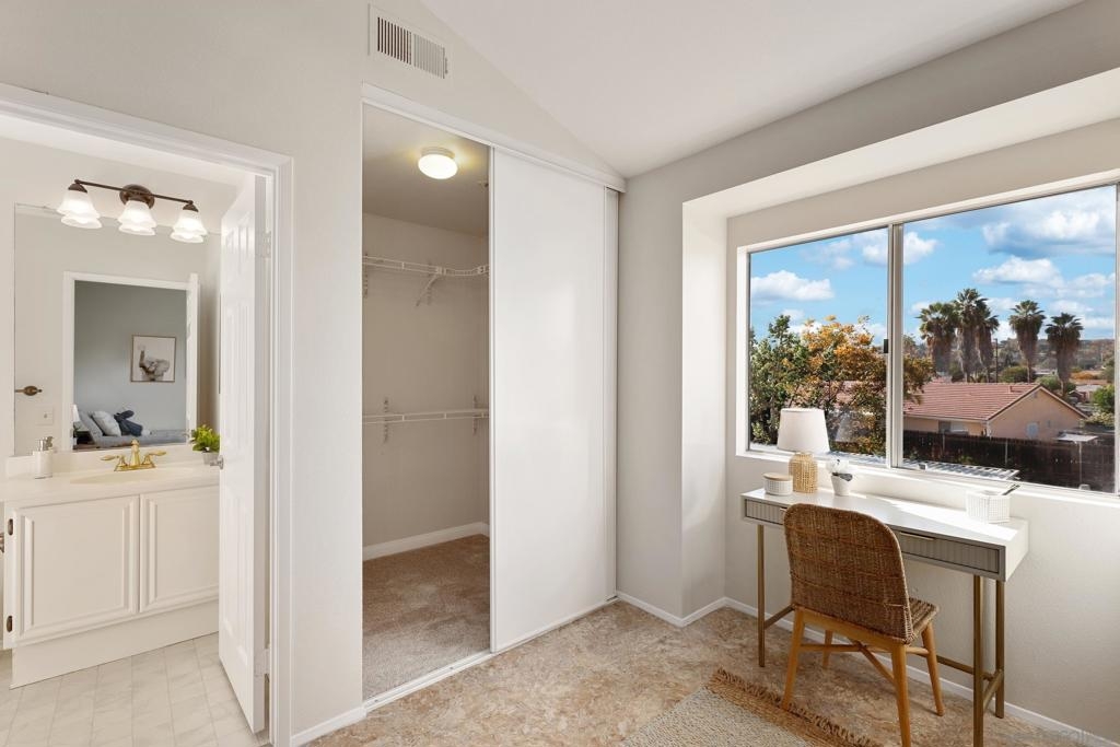 Move-in ready two story retreat nestled within the gated Ashford Parke community in Spring Valley! VA Approved! Enter the property to find an open floor plan with excellent natural lighting and vaulted ceilings on the second floor. This renovated unit boasts: a modern open kitchen with crisp white cabinetry that overlooks the living room, a half bath and laundry room on the first floor, a spacious primary bedroom with a walk-in closet, ensuite bathrooms for both bedrooms, and so much more! The charming unit also features a private patio with an outdoor dining area, as well as one covered and one uncovered parking space. Ashford Parke offers its residents access to a pool, spa, playground, and BBQ area. The property is situated near great restaurants, shopping, and has freeway access. Don't wait - book a tour before it's gone.