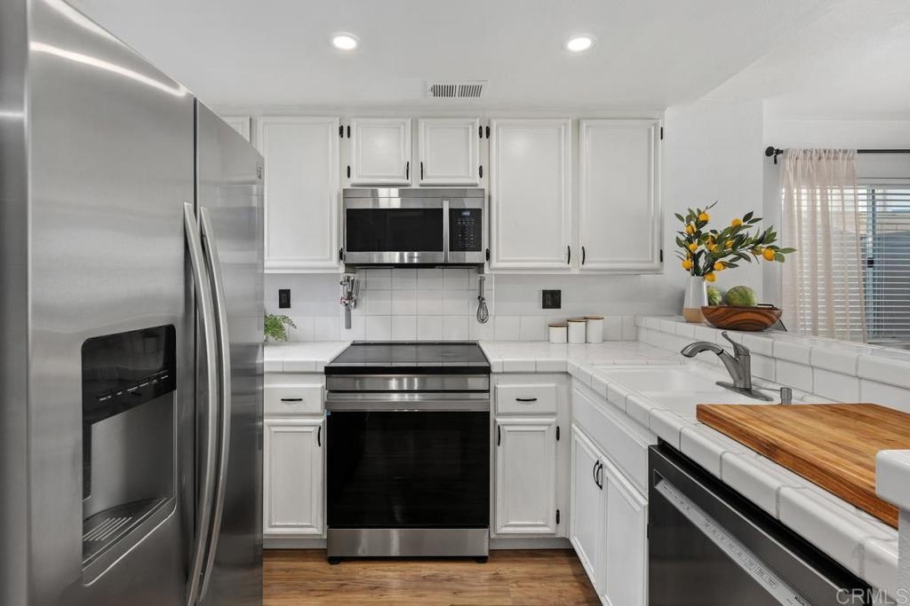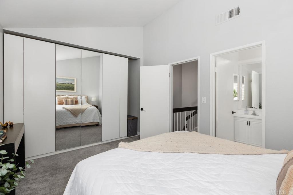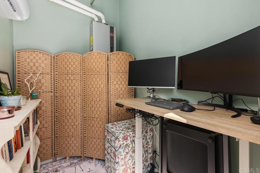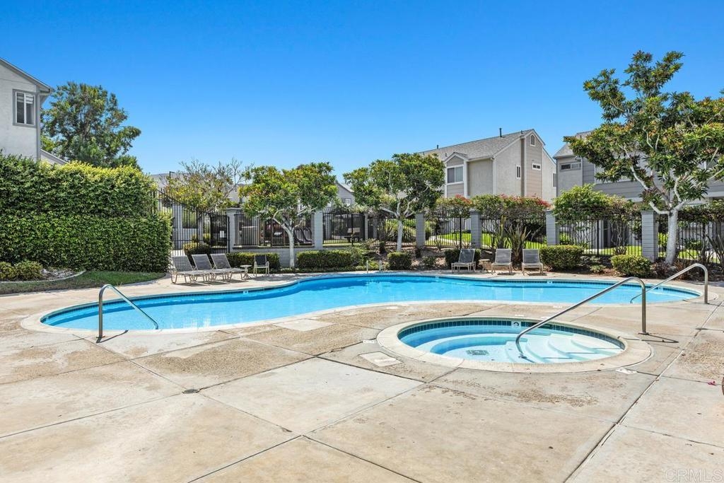 Welcome to this move-in ready two bedroom, two and a half bath with a private patio and office space! Beautifully designed end unit that feels like a single family home with two spacious primary bedrooms upstairs, half bath on the main floor AND an office on the large private patio. Open concept kitchen that flows into the dining area and living room, perfect for entertaining. Light and bright with custom treatments and vaulted ceilings makes it feel open and airy. Well maintained with new central heat and air conditioning, fresh paint, new induction stove in the kitchen and closet systems in each room. In-unit laundry is tucked away on the main floor with plenty of storage throughout. Community amenities include: two gated entrances, pool, spa, playground, dog run, lush grounds and two parking spaces, all with affordable HOA dues making this the perfect place to call home.