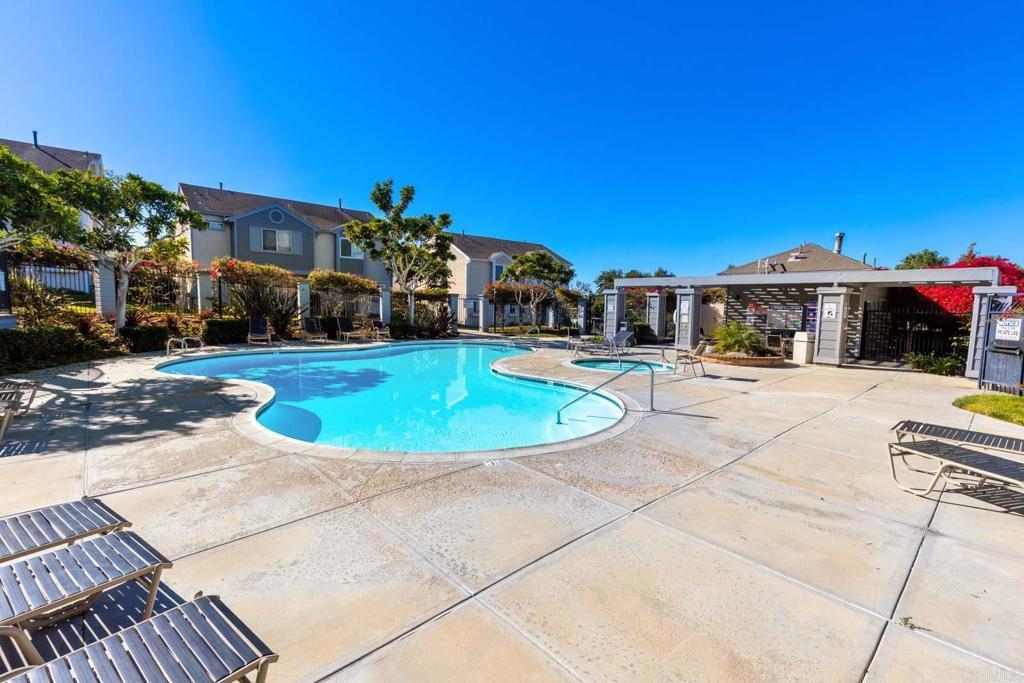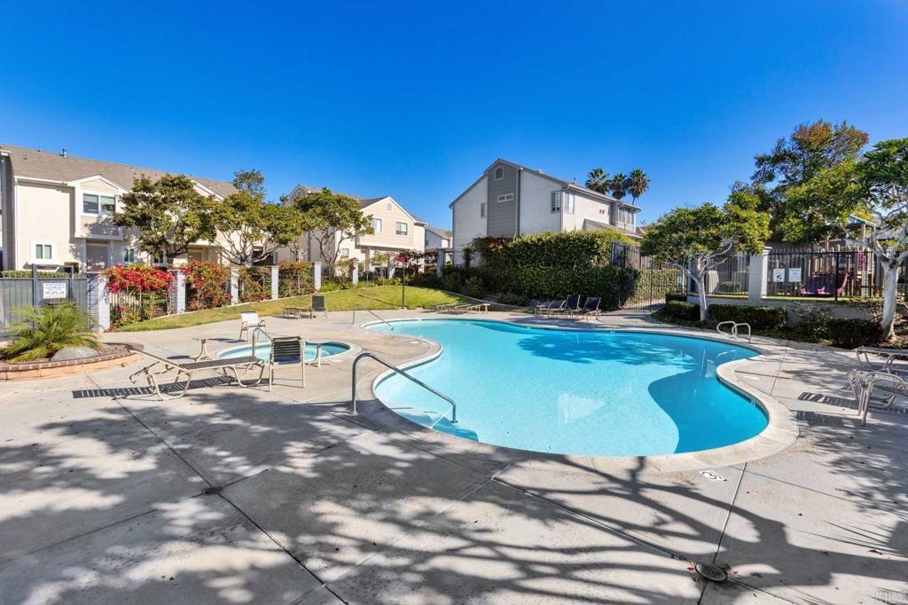 This charming 2 BR, 2.5 bathrooms home is nestled within a peaceful gated community. Access to a swimming pool, perfect for cooling off during hot summer days or simply lounging by the water. Also a gated kiddie playground. The community is meticulously maintained. This charming two story home features a cozy and inviting atmosphere with comfortable layout. As you enter the main floor, you will find a spacious and inviting living room. Adjacent to the living room is the kitchen, offering both functionality and style. The main floor also features a convenient laundry room with full size washer/dryer. Moving upstairs, you will discover 2 charming bedrooms and two full baths. The Primary room has vaulted ceilings. There is no unit behind and only one adjoining unit. Assigned 2 spaces one which is covered.