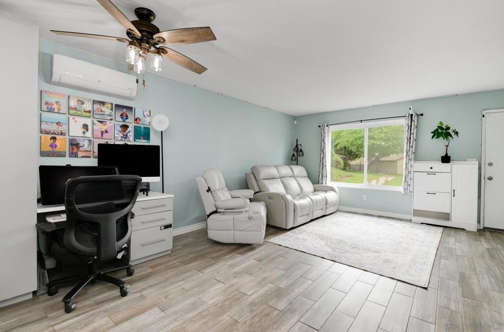 Welcome to this rarely available two-story end-unit townhome in Spring Valley! Step inside to a bright, open family room filled with natural light. The updated gourmet kitchen offers generous cabinet and drawer space, while the first floor features stylish new tile flooring, along with a convenient in-unit full-size washer and dryer. Stay comfortable year-round with highly efficient, zone-controlled mini-split heating and cooling. Love to entertain? The expansive, fully fenced backyard includes a patio and plenty of grassy space for relaxing, playing, or hosting guests. This is a must see!