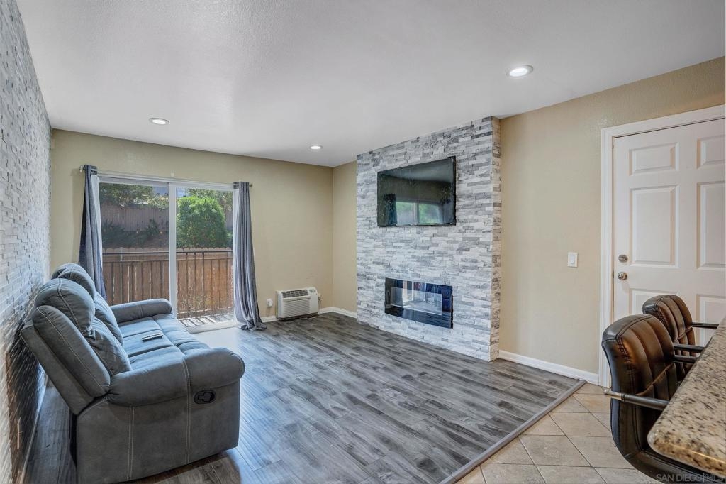 FHA/VA approved 1 bed, 1 bath move-in ready home. On the second story, this home features upgraded kitchen with stainless steel appliances, granite counters, tile backsplash, newer cabinets, and a counter height breakfast bar. Newer laminate and tile flooring and dual pane windows with newer blinds. Recessed LED lighting throughout. The spacious master bedroom features a walk-in closet. Low HOA fees, the gated community includes a pool, BBQ area and an assigned parking space. The complex is in the heart of Casa de Oro, conveniently close to shopping and major freeways. Pet friendly. Complex features a pool and laundry facilities for your convenience. Complex Features: ,, Sewer: Sewer Connected Topography: LL