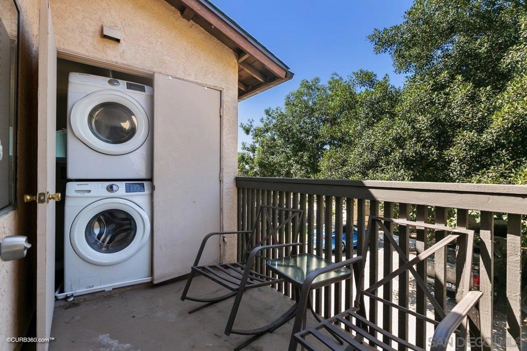 Fresh, light, and airy canyon facing single story townhome with 2 beds, 2 full baths, and detached 2 car garage that includes a ton of extra cabinet storage! Rare affordable find starter home tucked away in Spring Valley. Updated and freshly painted with newer A/C and premium stainless steel appliances. Features a private balcony and full closet size stacked laundry. Save $$$ HOA includes water and trash, plus community pool. Move in ready. VA friendly. Architectural Style: A-Frame/Dome/Log View: A-Frame/Dome/Log Equipment: Dryer, Washer Sewer: Sewer Connected