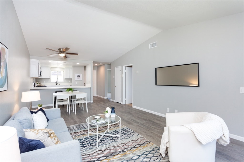 Welcome home to the sought after gated community of Hidden Valley. Single story home. 2 Bedrooms, 2 full baths 959 sf. Open & Bright floor plan with vaulted ceiling, Huge living room, central A/C, wood like flooring, Large Kitchen with new stainless steel appliance, quartz counters, Wash & dryer hookup in the laundry closet on the patio. park like grounds, pool & pool house. Located on cul-de-sac. close to all.. Neighborhoods: Spring Valley Equipment: Range/Oven Other Fees: 0 Sewer: Sewer Connected Topography: LL
