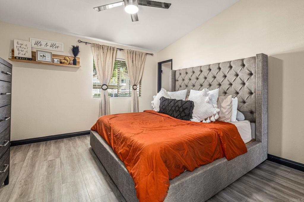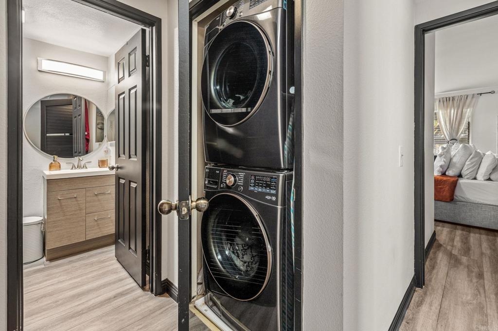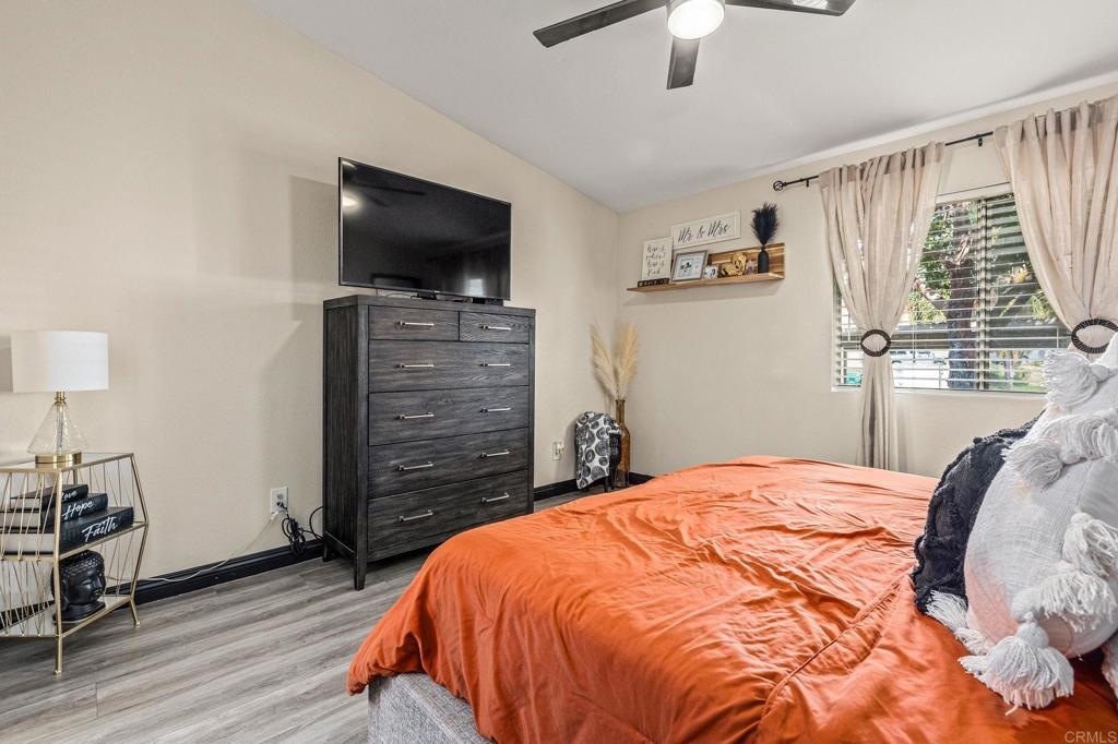 TURNKEY Top floor unit with A/C! VA APPROVED! Located in a smaller complex with well maintained HOA includes water and trash. 2 designated covered parking spaces and additional spaces for Electric EV chargers on property. Conveniently located near highways schools , shopping and near the Spring Valley Swap Meet. Sweetwater reservoir proximity offers ample open space for walking, jogging, biking and enjoying the wonderful San Diego weather. 3 bedroom 2 bath unit with high ceilings. Pride of ownership through out! Tasteful details and upgrades like high ceilings, laminated floors, a great neutral color pallet and beautiful bathrooms. Primary bedroom has a walk-in closet and private bathroom. The unit shares one common wall and no one above you for privacy. Washer and dryer do not convey. Buyer assumes all such investigations.
