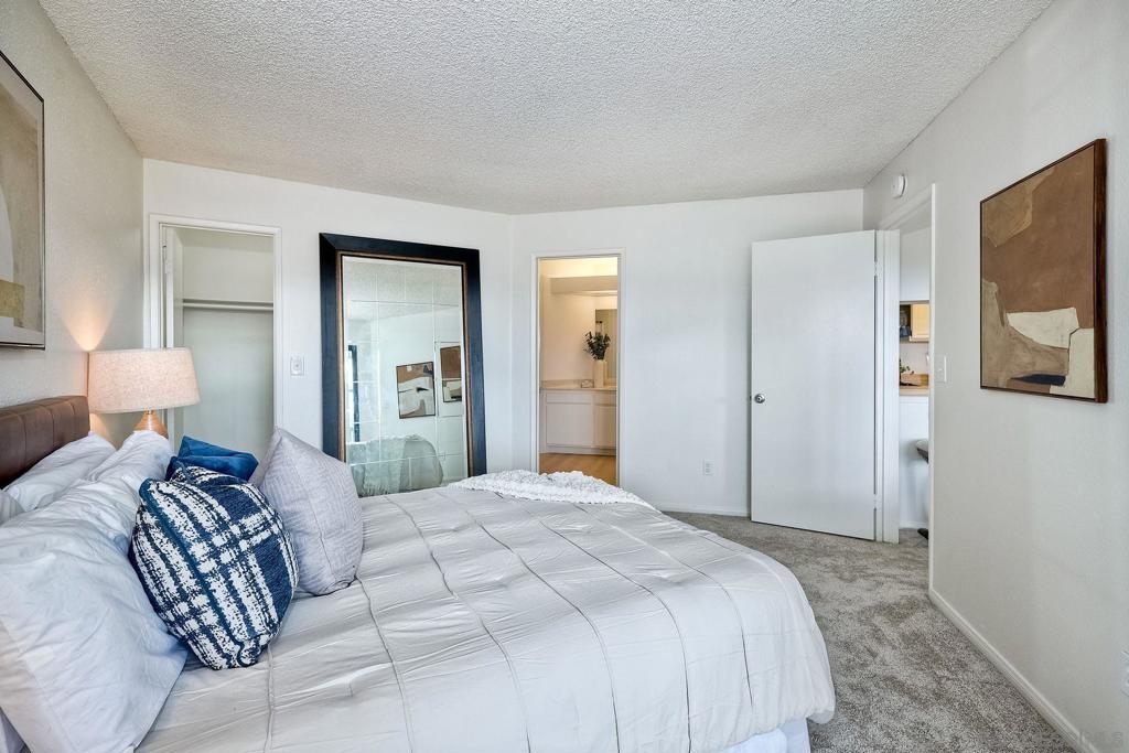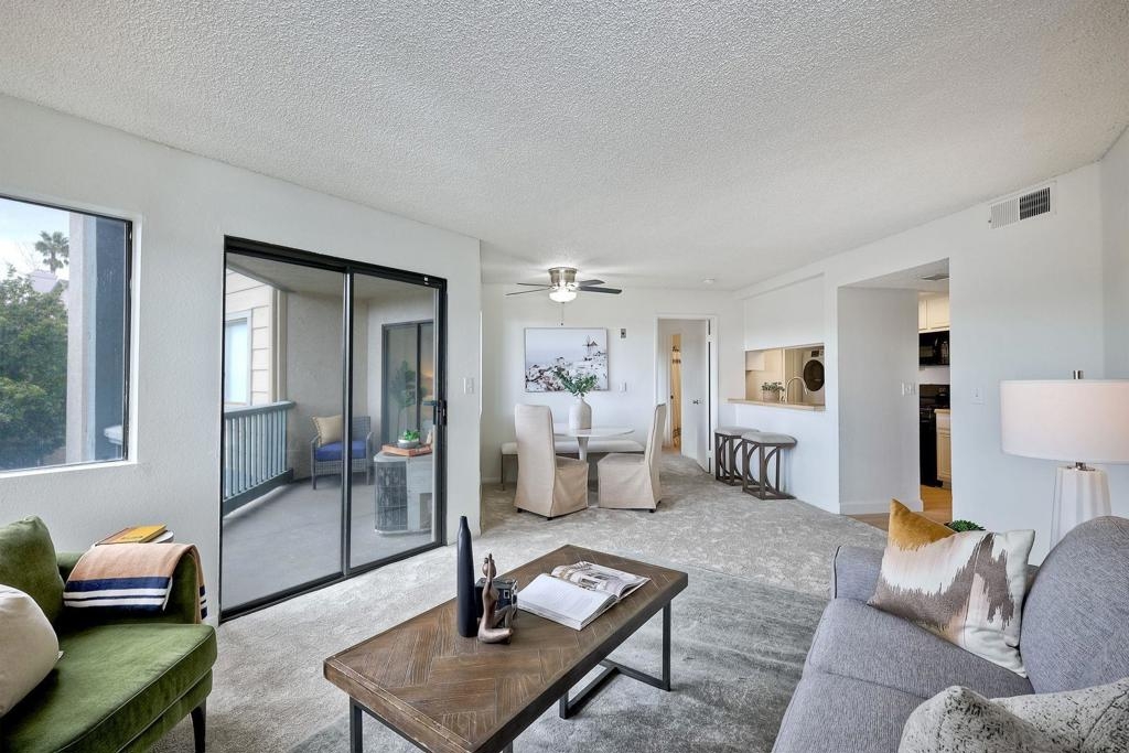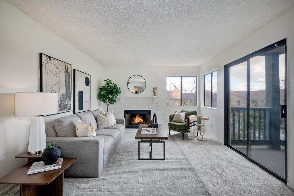 OPPORTUNITY KNOCKS! Welcome to this rarely available 3BD/2BA single level condo in the highly desirable community of Ranchwood. NO STAIRS TO ENTRY. Enter this spacious home and be greeted by peaceful views and large picture windows flooding the space with natural light. New carpet, new vinyl plank flooring and fresh paint all in soft neutral colors invite you into the open floorplan radiating style and comfort. SEE SUPPLEMENT BELOW *** ***Entertaining is a delight in the kitchen equipped with a pantry and plenty of counter space. A cozy fireplace in the winter and cool breezes in the summer create a lifestyle you will enjoy year-round. The primary bedroom offers a roomy walk-in closet and a bright ensuite bath. The two secondary bedrooms are generous in size with oversized closets.. Unwind on the large, private balcony, easily accessed from the living or primary bedroom and relax with the convenience of a full-size stacked washer/dryer in the kitchen. This lovely community features assigned covered parking with storage, a heated pool, spa, tennis courts, large grassy picnic area and is close to shopping, restaurants, movie theater and a quick jump to the 94. FHA and VA approved!