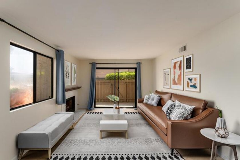FHA & VA Approved Welcome to this charming ground-level end unit in the highly sought-after Ranchwood Park community. This residence offers the perfect blend of comfort, convenience, and modern updates in a prime location. The open-concept living and dining area flows seamlessly to a spacious private patio overlooking peaceful greenbelt space. Soon, your patio will connect directly to the brand-new 9-acre Calavo Park, featuring a water park, dog park, skate park, community garden, sports courts, and dedicated park ranger. The home features luxury vinyl plank flooring throughout, a cozy fireplace, updated bathroom with walk-in shower, and a modern kitchen with stainless steel appliances, gas range, and breakfast bar. The home also includes in-unit laundry, covered parking with storage, and ample guest parking. Enjoy resort-style living in this pet-friendly community with a low $439 monthly HOA that covers water, trash, and 24/7 security. Amenities include a sparkling pool and spa, two tennis courts, clubhouse, and barbecue areas. This FHA/VA approved home is perfectly positioned near excellent schools, shopping, dining, and hiking trails with easy freeway access. From your private patio, enjoy stunning Mt. Miguel views. This move-in ready property won't last long!