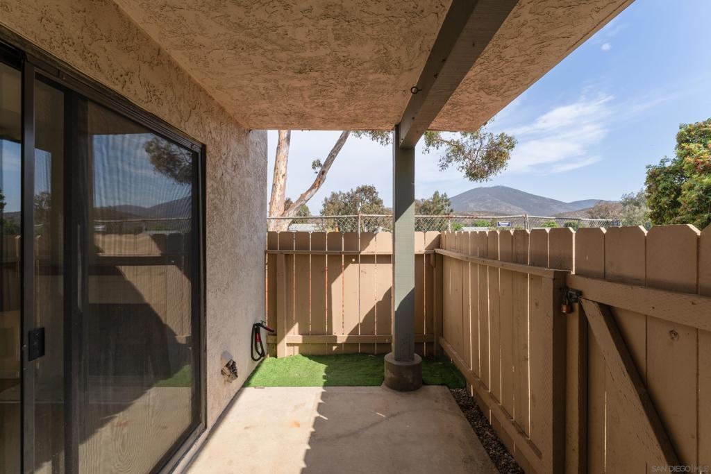 FHA & VA Approved Welcome to this charming ground-level end unit in the highly sought-after Ranchwood Park community. This residence offers the perfect blend of comfort, convenience, and modern updates in a prime location. The open-concept living and dining area flows seamlessly to a spacious private patio overlooking peaceful greenbelt space. Soon, your patio will connect directly to the brand-new 9-acre Calavo Park, featuring a water park, dog park, skate park, community garden, sports courts, and dedicated park ranger. The home features luxury vinyl plank flooring throughout, a cozy fireplace, updated bathroom with walk-in shower, and a modern kitchen with stainless steel appliances, gas range, and breakfast bar. The home also includes in-unit laundry, covered parking with storage, and ample guest parking. Enjoy resort-style living in this pet-friendly community with a low $439 monthly HOA that covers water, trash, and 24/7 security. Amenities include a sparkling pool and spa, two tennis courts, clubhouse, and barbecue areas. This FHA/VA approved home is perfectly positioned near excellent schools, shopping, dining, and hiking trails with easy freeway access. From your private patio, enjoy stunning Mt. Miguel views. This move-in ready property won't last long!