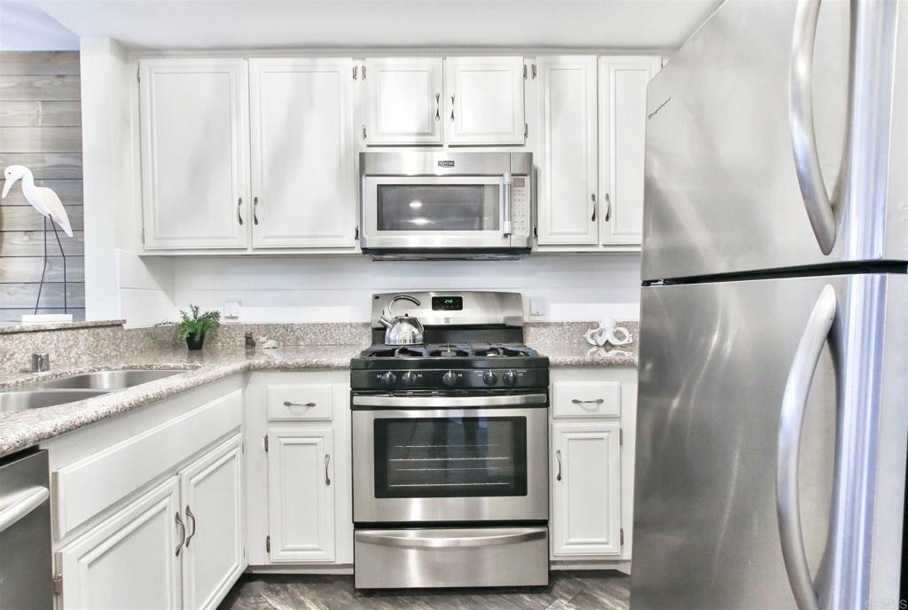 I've got the move-in ready home for you! Don't miss out on your opportunity to own in San Diego. This place has everything you need, it's a gorgeous ground-level turn-key 1 bedroom 1 bath condo. Maybe you're looking to purchase a property as an investment, with the new build homes going up down the street this property is projected to go up in value considerably! It has an open floor plan with a spacious bedroom and a big barn door closet. Upgrades include a washer and dryer in unit, new AC unit and boy that thing works. Stainless steel appliances, granite countertops in kitchen, stunning glass bowl sink in the restroom on top of a gorgeous spa-like river rock countertop. Cozy fireplace, Beautiful private patio area to enjoy. Extra-large sliding glass door that lets in the morning sunlight, new plantation shutters. HOA includes: water, sewer, trash, roaming security, three parking spaces! One dedicated covered parking space with storage and two parking stickers, huge lap pool for some exercise that's easy on the knees, jacuzzi for those stressful days, dog park for your four-legged children, jogging trail because we should all do more of that, picnic tables that make for a great meeting spot for those sketchy offer up meet ups, double tennis courts, mature trees and well-maintained landscaping. Close to freeways, shopping and restaurants. Call text or email for showing appointments.