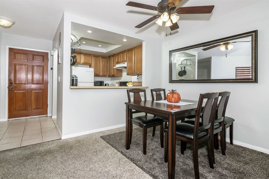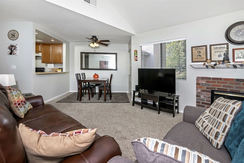This cozy one bedroom one bath condo is move-in ready! With a fireplace, private balcony, covered parking, and laundry closet (washer/dryer & refrigerator stay). The kitchen is roomy and open with a bar that opens to the dining area. This is an upper, end unit in a well-maintained complex near shopping, theater, and easy freeway access. The complex has a large pool with a changing area & restrooms, two tennis courts and park-like area with picnic tables. Perfect for investment or owner occupancy. Neighborhoods: Rancho San Diego Complex Features: , Equipment: Dryer, Range/Oven, Washer Other Fees: 0 Sewer: Sewer Connected Topography: LL