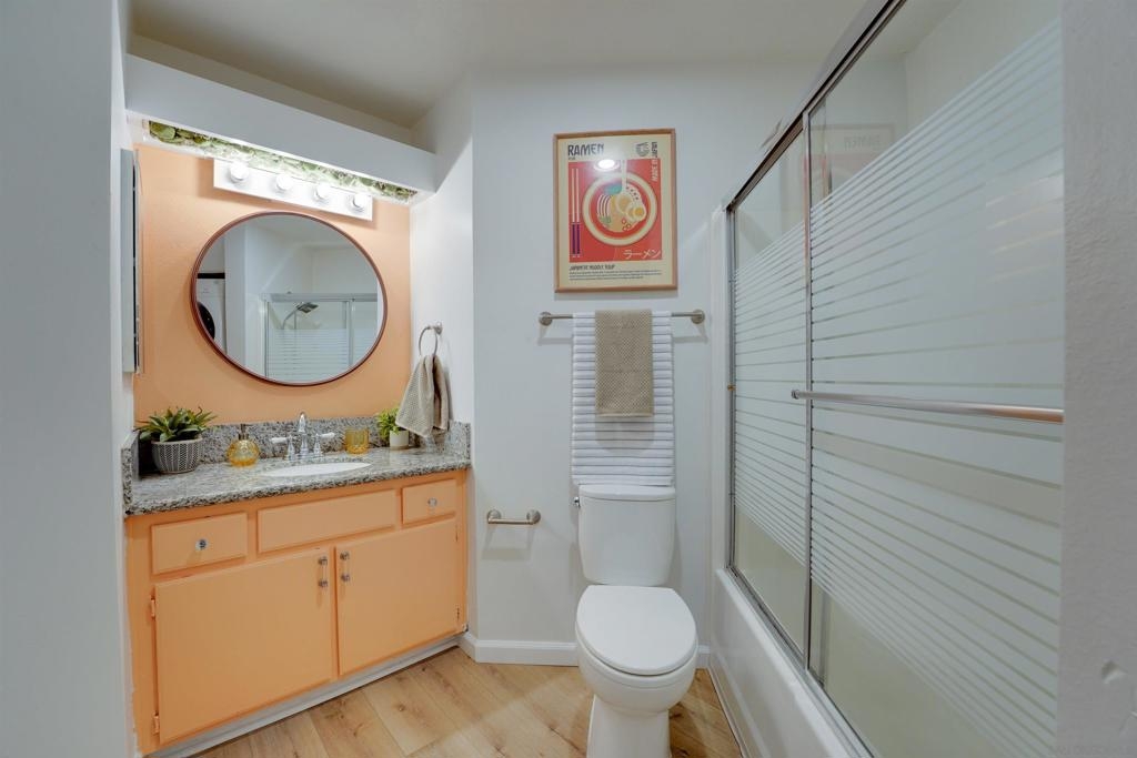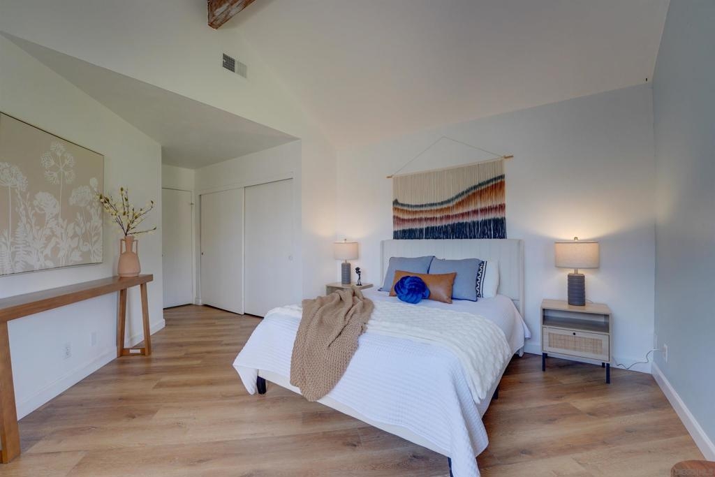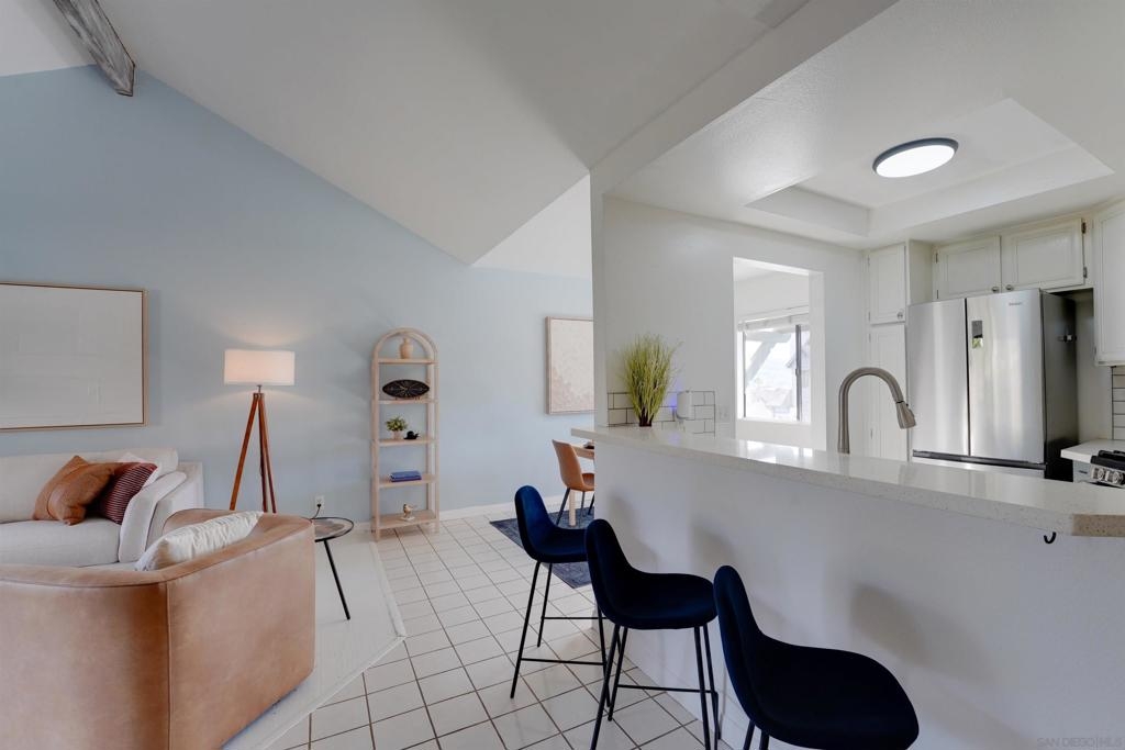 Value, character, views, privacy and convince! Top floor condo, with private entrance/landing. Ideally oriented to capture the morning sunshine and provide optimal privacy. dedicated covered parking conveniently located steps from the front door. This unique floor plan makes for fun and functional living. Perched above the greenbelt and peering out to eastern mountains, the patio and views are focal point from all living spaces. Voluminous and filled with light, this condo lives big, yet maintains a quaint and cozy feel. In unit laundry, refreshed kitchen and appliances, tastefully updated and charming...this really is a rarity! Furthermore, the Ranchwood community is a best kept secret. This community is the absolute embodiment of the San Diego spirit with an emphasis on beautiful landscape and outdoor recreation. A smart buy by any measure and opportunity to love where you live!