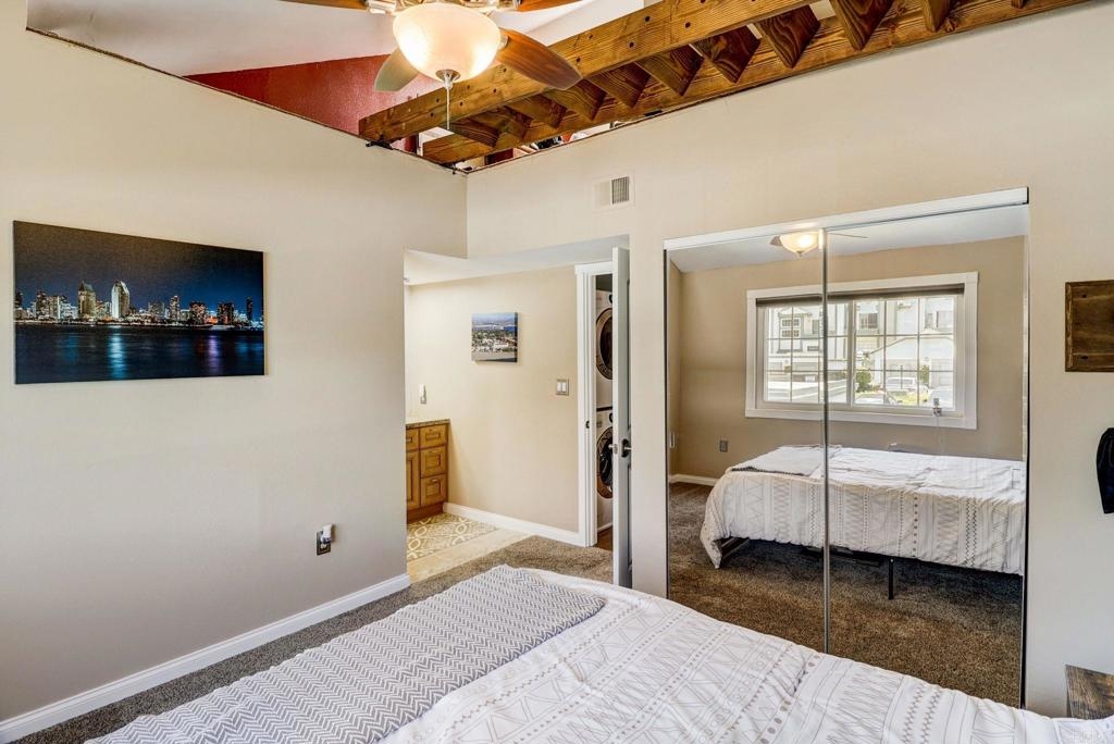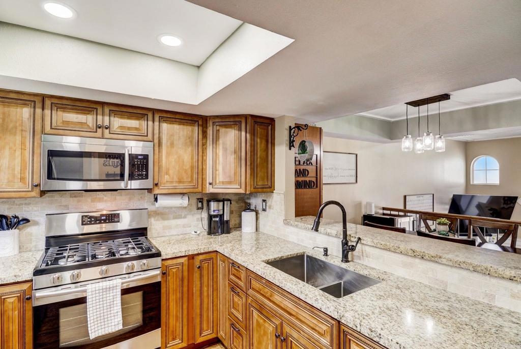 Welcome to this beautiful, newly remodeled townhome located in the highly sought-after gated Spring Valley community. With desirable features, updates throughout, and canyon views, this home offers the perfect blend of modern elegance and comfort. Step inside to discover a beautifully designed interior, highlighted by thoughtful details and finishes. The well-appointed kitchen features granite countertops, sleek stainless steel appliances, and convenient gas cooking with ample counter space and storage. New flooring throughout, updated paint, gorgeous paneled ceiling details in the dining and living room, recessed lighting throughout the entire home along with all three bathrooms have been updated beautifully. Spacious layout promotes effortless entertaining and comfortable living with natural light flooding the living area through the dual pane windows. Bonus loft area is great for potential office space, bedroom, or storage. The thoughtfully designed outdoor space also includes three private patios, perfect for outdoor gatherings or simply unwinding while enjoying the canyon views. The main bedroom patio also opens to the same canyon views. For added convenience, a detached 1-car garage plus assigned open parking space provides secure parking and extra storage space. Well-maintained HOA has recently made upgrades to the entire community such as landscaping, painting of all exteriors of each unit and buildings as well as roof maintenance. The pool, hot tub and clubhouse area have all been freshly painted as well as new asphalt planned throughout the property. Enjoy the great amenities such as a dog park area, pool, hot tub, and clubhouse. Don't miss the chance to make this exquisite townhome your own. Great location is close to the weekend swap meet, restaurants, highly rated schools and shopping.