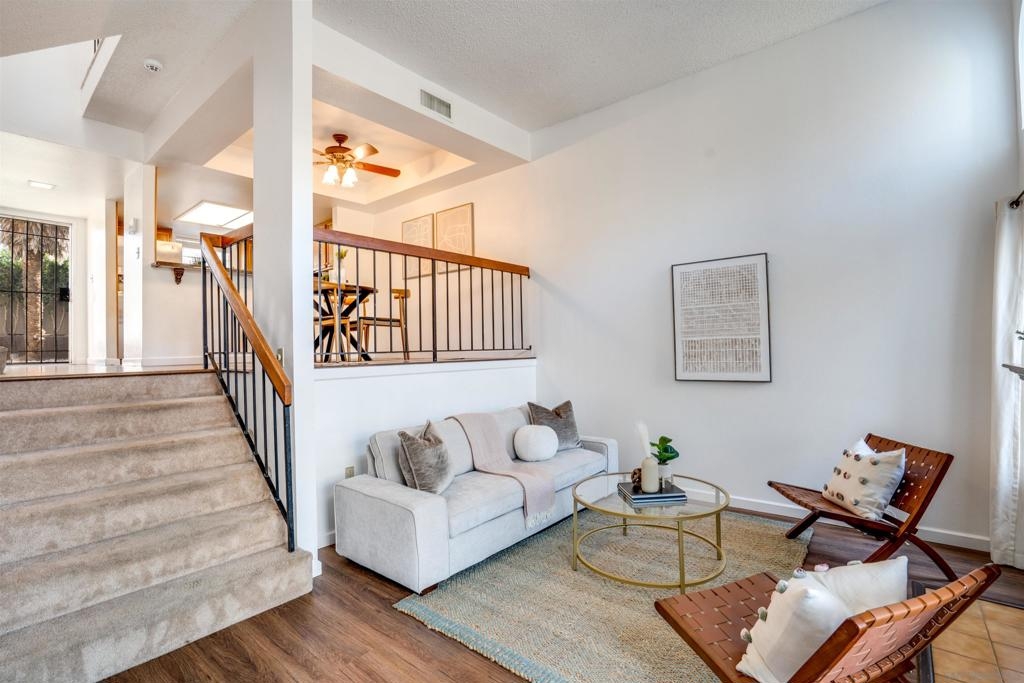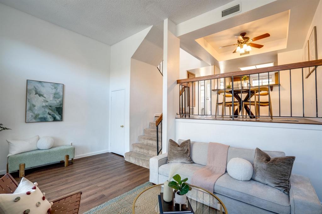 Nestled in a gated community, this stunning tri-level townhome offers 2 bedrooms and 2.5 baths with a thoughtfully designed open floor plan that flows seamlessly from the kitchen to the living room—perfect for modern living. A convenient half bath on the lower level makes entertaining a breeze. Step outside to enjoy the low-maintenance turf in your private gated front yard or relax while taking in the STUNNING canyon views from your patio off the living room or the upper deck off the primary bedroom. Upstairs, you'll find dual master suites, each featuring an attached bathroom. The secondary bedroom also includes a unique loft accessible by ladder—ideal for extra storage or a bonus area. The property comes with a detached one-car garage and an additional parking spot. Take advantage of the wonderful community amenities, including a pool, hot tub, dog park, and clubhouse. The HOA fee covers water, sewer, trash, and exterior maintenance, including community landscaping—adding convenience to this beautiful home. For VA buyers, there may be a possibility to assume the existing loan, offering an added benefit to make this home even more accessible. Come see it for yourself and fall in love with everything it has to offer!