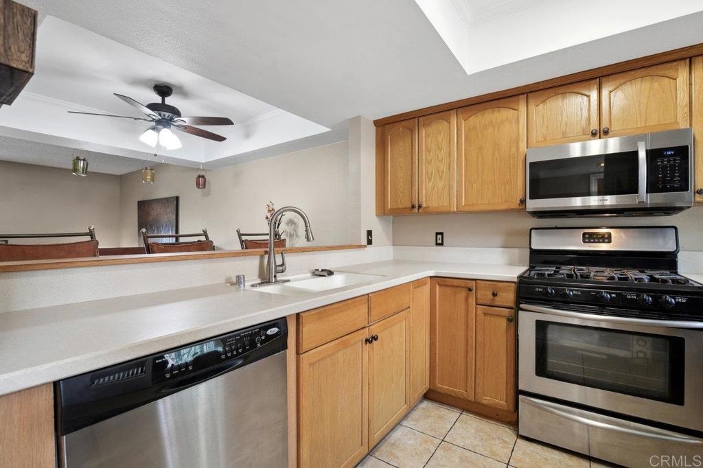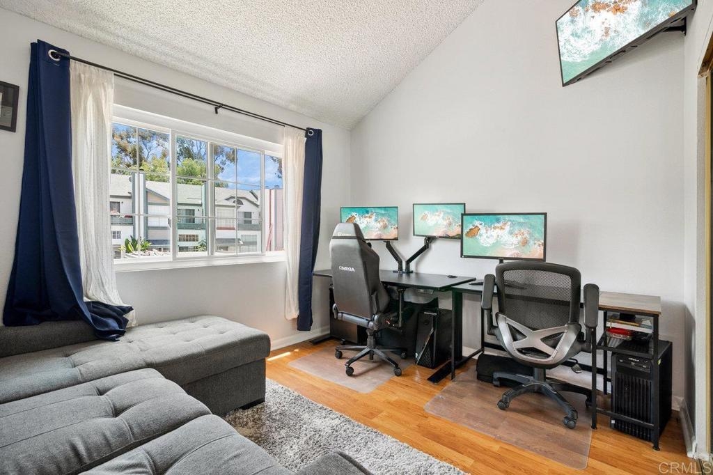 Enter this warm and inviting home where you can enjoy having the window/doors open for a warm or cool breeze; the owners say they rarely turn on the AC or heater. The skylight window can be opened via smartphone app to accommodate any weather. You can be at the pool within a minute or two. This unit has one of the largest backyards and also a front patio. Each bedroom has an ensuite bathroom. The primary bedroom is large and has a balcony overlooking the pool area. It also features a storage/loft that provides more than enough storage space or even a small room to those who need it. The living room features a wood burning fireplace and view to the backyard. There is new tile in the hallways, kitchen, and bathrooms and newly upgraded double paned windows throughout house (sliding doors are not new). The high ceilings give you an open and spacious feeling. The garage offers good car storage or even a workshop for hobbies. The HOA is proactive on maintenance and improvements to the community, recent improvements include landscaping, recently painted exteriors, roofing was recently inspected and minor repairs, repainting of the pool/hot tub and clubhouse area, dog park area behind pool house, tree trimmings. and plan to redo the asphalt for the entire community in the near future. The landscaping provides an array of plant life and is well maintained. Recently renovated club house. 20 min drive to downtown or the beach.