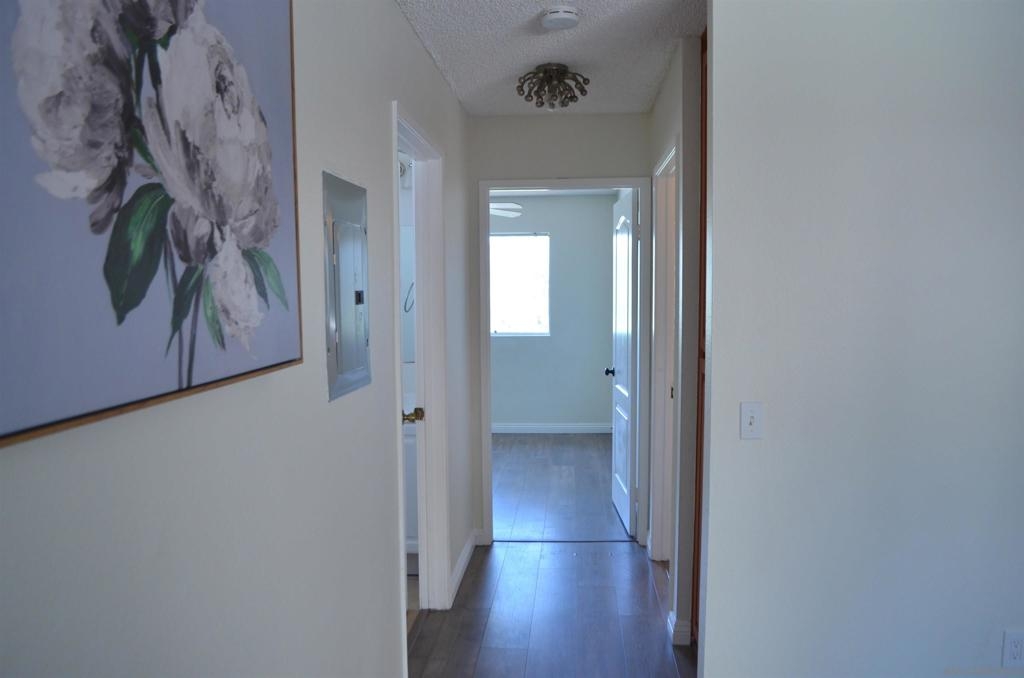 Come check out this 2bed/2bath upstairs condo in a gated community in Spring Valley! This beautiful condo has laminated flooring throughout the home, light fixtures and recent updates. The kitchen and dining room flows right into the living room and patio area, making it perfect for entertaining guest! The primary bedroom featuring an ensuite bathroom is tucked away at the end of the hallway making it private for you! There is a community laundry center, pool and gym right in this complex. Lots of street parking as well and one assigned parking spot and one guest parking pass. HOA includes water, trash, common area maintenance and community pool and gym.