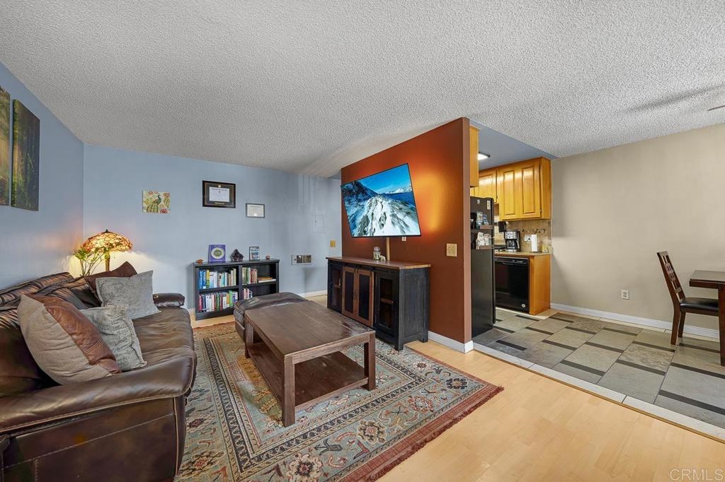 Welcome to this fantastic SummerTree condo, boasting 1 bedroom, 1 bathroom, and incredibly spacious living areas! Step into a living room with laminate wood flooring, while the dining and kitchen areas feature tile flooring, granite countertops, and tile backsplash. Equipped with a ceiling fan, through wall AC unit that is wifi enabled, and modern appliances including dishwasher, microwave, and electric stove, this space is both stylish and functional. The bedroom offers ample comfort with laminate flooring and a large closet with custom built-ins. Situated just minutes from the 94 freeway, Rancho San Diego Town shopping center for your shopping needs, and a short drive to Downtown San Diego. Enjoy the convenience of gated living with low HOA fees.