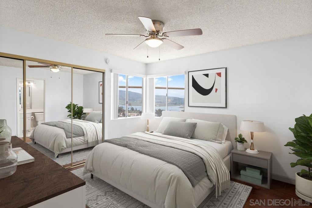 Rare Corner Unit with Sweetwater Reservoir Views! Welcome to one of the most desirable units in the community — a corner residence offering sweeping views of the Sweetwater Reservoir from two private patios and both bedrooms. This thoughtfully designed home features dual en-suite bathrooms, in-unit laundry, and bamboo flooring. This units features an extra deck. Start your mornings with coffee overlooking the lake or unwind by the cozy fireplace. Nestled in a gated, resort-style community, enjoy access to a sparkling pool, soothing spa, and additional laundry facilities. Located in a peaceful residential neighborhood in the heart of Spring Valley, you're just minutes from shopping, dining, parks, and easy freeway access. This is a rare opportunity to own a view home — don’t miss your chance to make it yours!