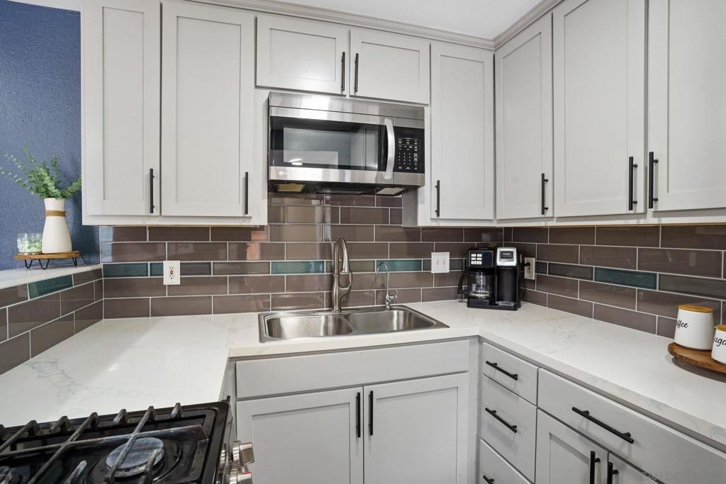 Beautifully maintained twin-home, but lives like a detached home (only 1 neighbor)! Great for 1st time home buyers looking for great family-friendly neighborhood. Upgrades galore: New AC unit. All New double paned windows. New luxury vinyl plank flooring. Kitchen has all new countertops, cabinetry and custom back splash. New water filtration unit. Plus, all appliances convey; including solar panels w/ low monthly payments! Large fenced and low maintenance back yard is complete with covered patio. 3 spacious bedrooms and 2.5 bathrooms that have been upgraded with new vanities and lighting, freshly painted and recessed lighting throughout - This home will not last! Community is FHA & VA approved and complex amenities include pool, BBQ, basketball court & playground.