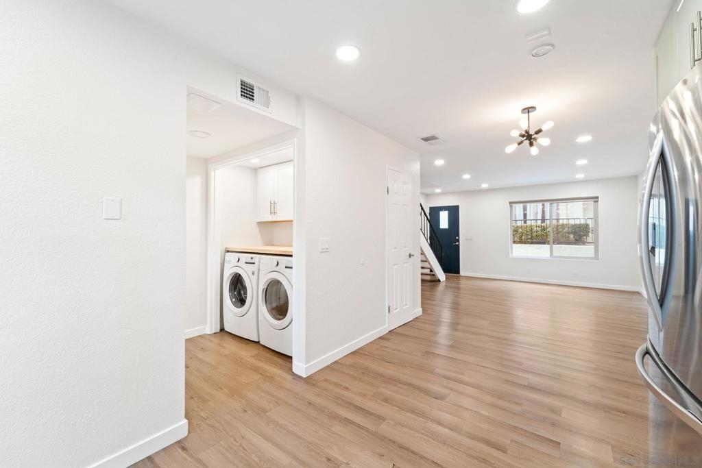 This 2 bed 1.5 bath townhouse residence boasts a plethora of upgrades, ensuring a modern and comfortable lifestyle. As you enter, be greeted by the fresh scent of newness and the gleam of brand-new flooring that guides you through the spacious living area. The entire unit has been lovingly renovated, featuring a new open concept kitchen equipped with state-of-the-art appliances that will inspire your inner chef to create culinary masterpieces. Added Bonus- this unit has AC. No more trips to the laundromat! This unit offers the ultimate convenience with its brand-new, in-unit washer and dryer, making laundry day a breeze. The bathrooms have been tastefully updated, exuding elegance and style with every detail. Enjoy ample natural light streaming in through the newly installed windows, illuminating every corner of your sanctuary. Parking woes are a thing of the past with the gated parking that ensures the safety and security of your vehicle. Additionally, rest easy knowing that paid assessments mean no surprise expenses, allowing you to fully enjoy the peace of mind that comes with homeownership.