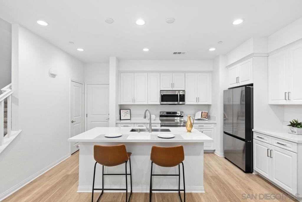 Move right into modern comfort with this nearly new, solar-powered townhome built in 2023. Set within a beautifully maintained community tucked in the serene hills near Sweetwater Reservoir, this spacious 3-bedroom, 2.5-bath, two-story home blends style and convenience at every turn. Step inside to an airy, light-filled layout that centers around a contemporary kitchen outfitted with a large island, breakfast bar, upgraded sink, and generous walk-in pantry. Wide-plank flooring on the main level pairs perfectly with fresh quartz countertops and a clean, neutral palette throughout. Bathrooms feature upgraded tile finishes for an elevated touch of design, while automated shutters add a sleek modern feel. The master retreat offers a spa-inspired bath for the ultimate escape. Situated in a private section of the complex yet conveniently just across the street from the community pool, this home offers the best of both privacy and accessibility. Enjoy scenic views of rolling hills and distant mountains from your private patio or upstairs windows. The inviting front courtyard welcomes you home, and the community’s resort-style amenities—including lush green spaces, swimming pool, BBQ area, and playground—make every day feel like a getaway. Conveniently located near parks, schools, and shopping for effortless living.
