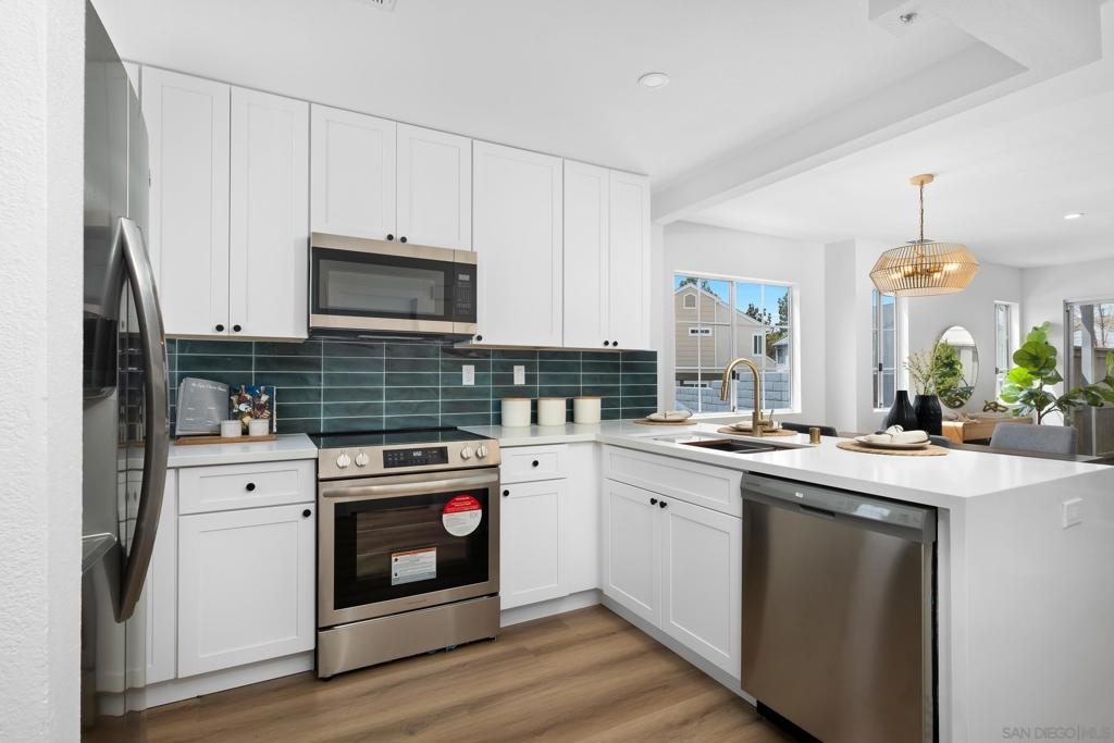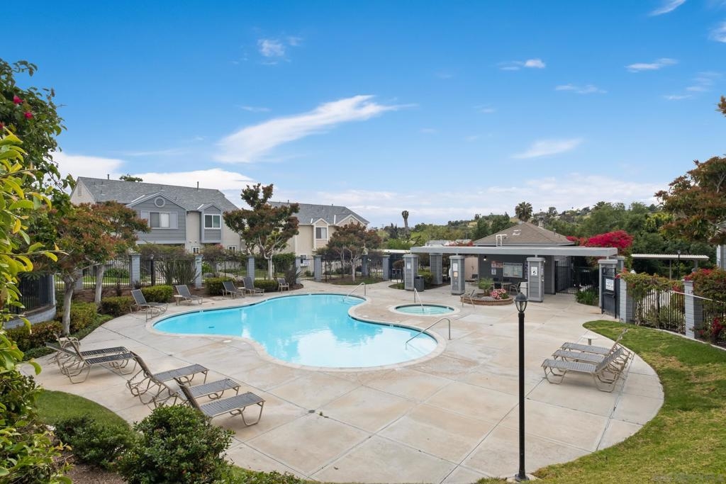 Two story end unit 2 bedroom 2.5 bathroom in the private gated community of Ashford Park in Spring Valley is ready for you to call a home! An inviting open floor plan creates a warm and welcoming ambiance with its recessed lighting and natural light right when you step inside! The living room features a central fireplace and is next to a private patio where you can enjoy the indoor and outdoor living space. The kitchen has designer touches and modern finishes. Downstairs, you'll also find a convenient half bathroom and laundry room. Upstairs are your two dual primary bedrooms. One of the rooms includes a spacious walk-in closet, while the other opens onto a charming balcony. Ashford Park has a playground, a community pool, and is dog friendly! Easy access to the South Bay Fwy (125), restaurants, markets, and more!