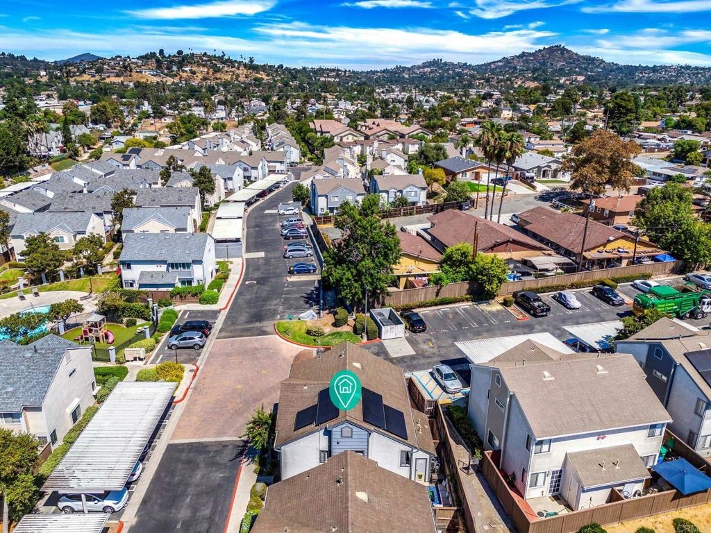 VA & FHA APPROVED. Owned SOLAR. Run your AC during summer without sweating the pain of the SDG&E bill. Remodeled kitchen and baths. Not a Flip! Bedrooms are generously sized and both have en suite bathrooms. Gated Complex in the heart of Spring Valley. End unit, only sharing 1 wall, featuring 2 Beds/2.5 Baths, a large private patio, Upstairs bedrooms feature vaulted ceilings. Kitchen opens up to combo dining/living area for a light and bright, open floor plan. Large laundry room with washer & dryer included. Central AC/Heat. Tile floors downstairs look like wood. Complex is fully gated and secured. Community features Pool, spa, dog park and well manicured landscaping throughout.