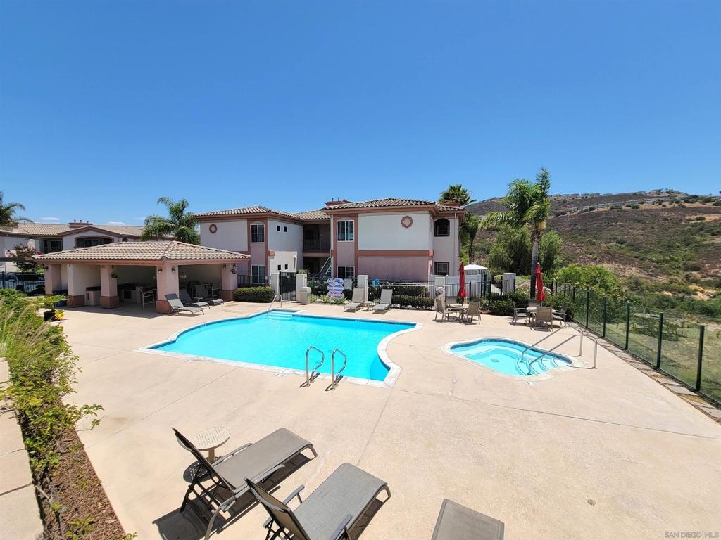 Top floor move-in ready condo in a newer gated pool/spa community! Built in 2006 this beautiful property features granite counters, stainless steel appliances, and diagonal stone tile floors throughout. Full-sized, in-unit washer and dryer. Walk-in closet. Relax by the fireplace or on the covered balcony with views of the surrounding hills. Includes one covered assigned parking space and one additional spot by permit. Low HOA fees. Enjoy the heated pool and spa with long views of Sweetwater reservoir! Equipment: Dryer, Washer Sewer: Public Sewer Topography: LL