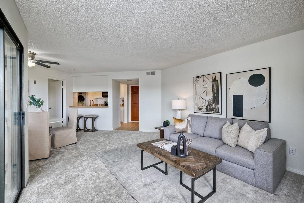 OPPORTUNITY KNOCKS! Welcome to this rarely available 3BD/2BA single level condo in the highly desirable community of Ranchwood. NO STAIRS TO ENTRY. Enter this spacious home and be greeted by peaceful views and large picture windows flooding the space with natural light. New carpet, new vinyl plank flooring and fresh paint all in soft neutral colors invite you into the open floorplan radiating style and comfort. SEE SUPPLEMENT BELOW *** ***Entertaining is a delight in the kitchen equipped with a pantry and plenty of counter space. A cozy fireplace in the winter and cool breezes in the summer create a lifestyle you will enjoy year-round. The primary bedroom offers a roomy walk-in closet and a bright ensuite bath. The two secondary bedrooms are generous in size with oversized closets.. Unwind on the large, private balcony, easily accessed from the living or primary bedroom and relax with the convenience of a full-size stacked washer/dryer in the kitchen. This lovely community features assigned covered parking with storage, a heated pool, spa, tennis courts, large grassy picnic area and is close to shopping, restaurants, movie theater and a quick jump to the 94. FHA and VA approved!