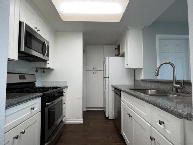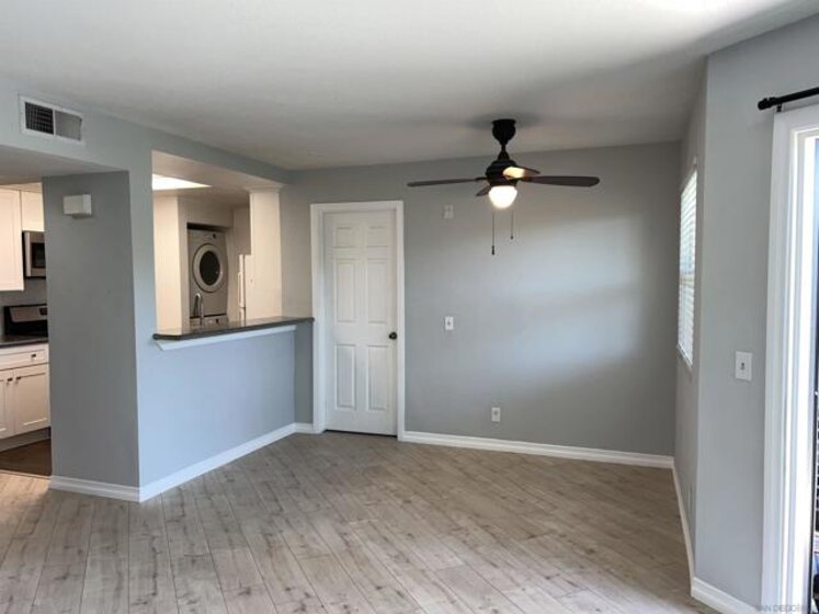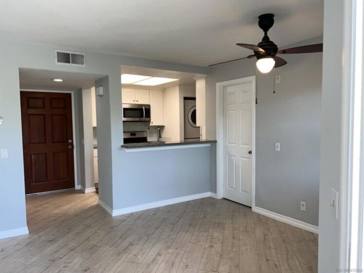 Rarely available 3beds/2Full baths, single level townhome, remodeled throughout, w/stackable laundry in kitchen, open floor plan, w/fireplace. Updated vinyl flooring & windows & glass sliders, newer AC/Heater & water heater, paint, ceiling fans. Roomy Patio. Well maintained community Ranchwood Park w/amenities: heated community pool & jacuzzi, tennis courts, large grass picnic area, w/BBQ's & picnic tables. Ample street parking, quiet neighborhood. Available 3parking spaces w/1 covered space #22 & 2uncovered parking w/decal, carports has small storage cabinets. FHA & VA Approved.