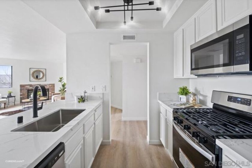 Gorgeous Newly Renovated Condo with VIEWS! Complex is VA & FHA Approved! This 3 bedroom, 2 bath home features new upgrades throughout! A beautiful modern kitchen with brand new stainless steel appliances, quartz countertops, interior paint, vinyl plank floors, light fixtures, carpet in bedrooms, light fixtures, in-unit laundry and so much more! Conveniently located near Rancho San Diego shopping, movie theater and restaurants! Community features a pool, spa, tennis courts and large common area for picnics. Easy access to access to unit, no stairs! Assigned parking and storage. You'll fall in love with the beautiful home and great community! Seller will entertain offers btwn $499,900-$540,000.