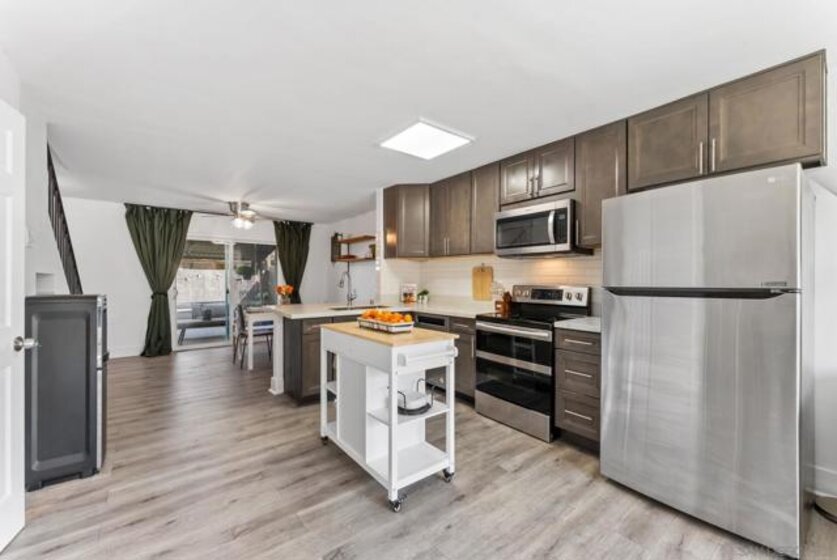 Beautifully upgraded 2-bedroom, 1.5-bath, 2-story condo with no upstairs or downstairs neighbors! Conveniently located near the 94 and 125 freeways, this home offers an open floor plan with modern finishes throughout. Enjoy stainless steel appliances, in-unit laundry, and fresh paint throughout the entire space. Recent upgrades include a new water heater (2 years old), new double-pane windows, laminate flooring, and recessed LED lighting. Step outside to a private, fully fenced patio—freshly painted and complete with a brand-new awning—perfect for relaxing or entertaining. The stairs and landing have been updated with new laminate flooring, and the main bedroom features a custom closet organizer for added functionality. Two assigned parking spaces include one uncovered spot right in front of the unit and one covered space with additional storage. Plenty of guest parking and street parking available. The community offers a large park with walking trails, a basketball court, and a sparkling pool—everything you need to enjoy comfortable and convenient living!