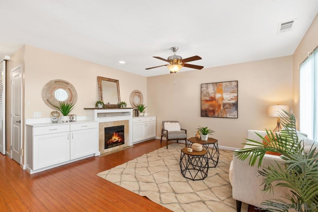 Outstanding value! 3 bedroom / 2 full bath home with a large 2 car garage plus bonus work room! And it even has a ocean view from the tranquil patio! Best part is that it is move in ready and has the amenities that you want. Newer kitchen with solid surface countertops, stainless steel appliances, newer windows throughout, fireplace in the living room, stacked washer dryer (in the home), forced air heating. Very private location in the community. Conveniently located in Spring Valley. Come take a look today!