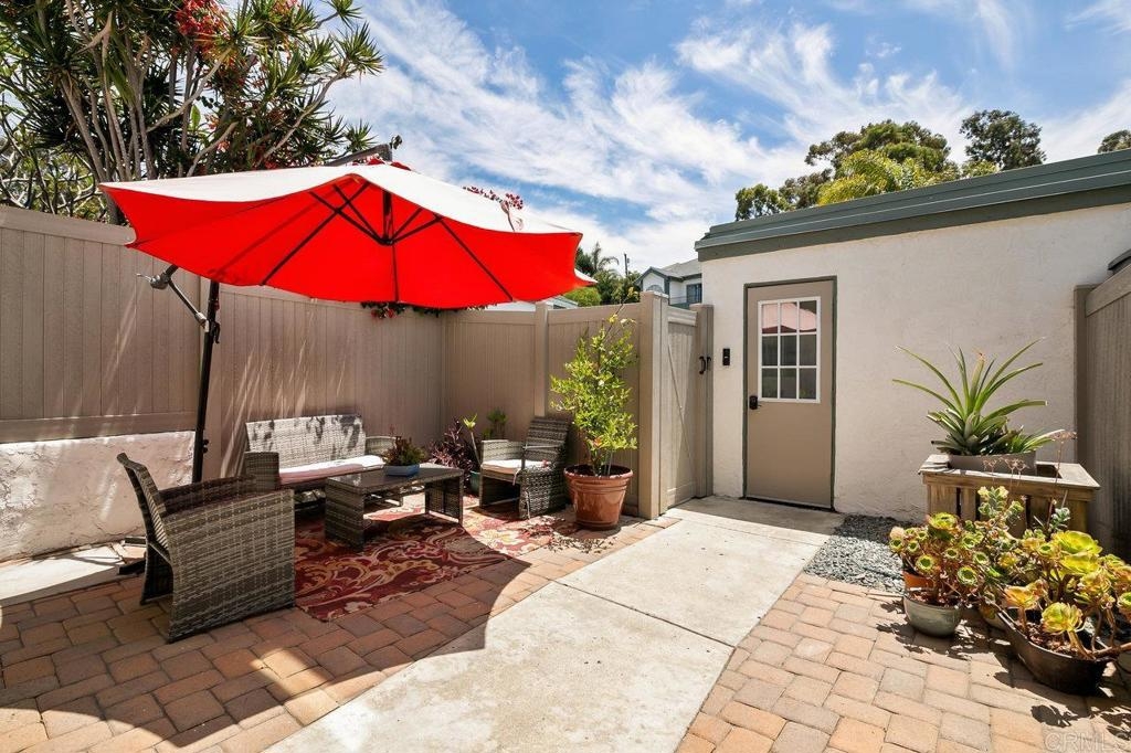 Enter this warm and inviting home where you can enjoy having the window/doors open for a warm or cool breeze; the owners say they rarely turn on the AC or heater. The skylight window can be opened via smartphone app to accommodate any weather. You can be at the pool within a minute or two. This unit has one of the largest backyards and also a front patio. Each bedroom has an ensuite bathroom. The primary bedroom is large and has a balcony overlooking the pool area. It also features a storage/loft that provides more than enough storage space or even a small room to those who need it. The living room features a wood burning fireplace and view to the backyard. There is new tile in the hallways, kitchen, and bathrooms and newly upgraded double paned windows throughout house (sliding doors are not new). The high ceilings give you an open and spacious feeling. The garage offers good car storage or even a workshop for hobbies. The HOA is proactive on maintenance and improvements to the community, recent improvements include landscaping, recently painted exteriors, roofing was recently inspected and minor repairs, repainting of the pool/hot tub and clubhouse area, dog park area behind pool house, tree trimmings. and plan to redo the asphalt for the entire community in the near future. The landscaping provides an array of plant life and is well maintained. Recently renovated club house. 20 min drive to downtown or the beach.